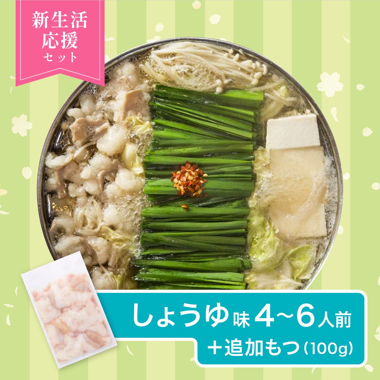 【新生活応援】和牛もつ鍋しょうゆ4~6人前+本場熊本直送馬刺し(100g)セット